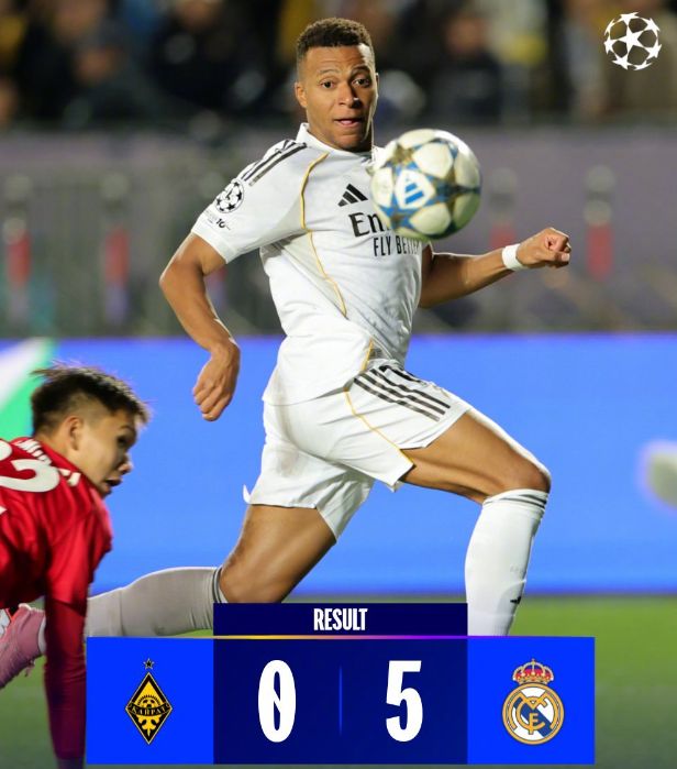 上一场比赛,客场2-5惨败给马德里竞技的皇马,此役为了提振士气,在客场和阿拉木图凯特拉的欧冠比赛中,进攻端尽遣主力出战,也取得了预期的效果,姆巴佩连入3球上演帽子戏法,早早终结了胜负的悬念,比赛最后时刻,替补登场的卡马文加和迪亚斯也分别建功,皇马在欧冠客场取得了一场5-0的大捷,暂时走出了惨败马竞的阴霾。