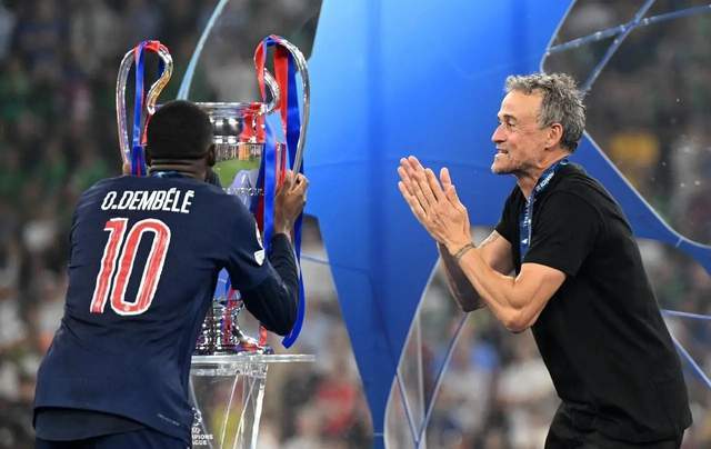 2023年夏天,登贝莱转会至巴黎。率巴萨最后一次赢得欧冠冠军的恩里克也成为了巴黎的主帅。这二位巴萨旧人,两年后在巴黎书写了历史。